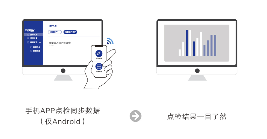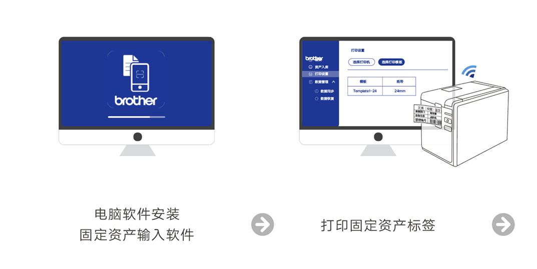 在 PC 端,安装固定资产软件后,配合PT-P710BT机型(仅支持USB打印),可以轻松打印出符合要求的固定资产标签。这些标签被粘贴在相应的资产上后,在盘点时就可以发挥重要作用。